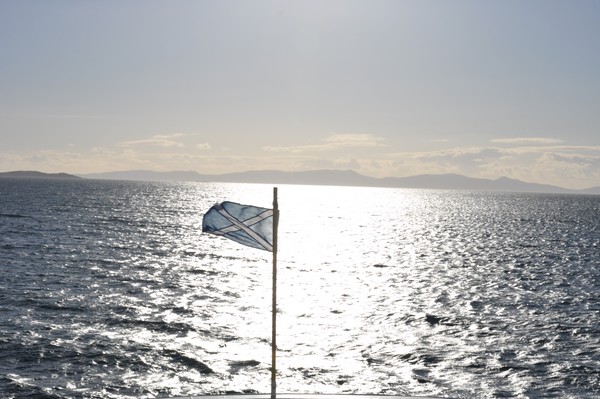 Med flaggan i topp mot Islay.