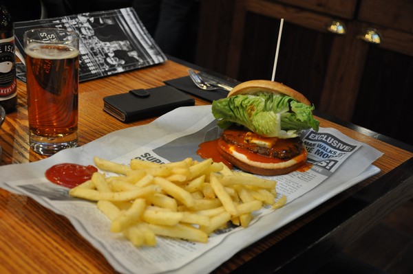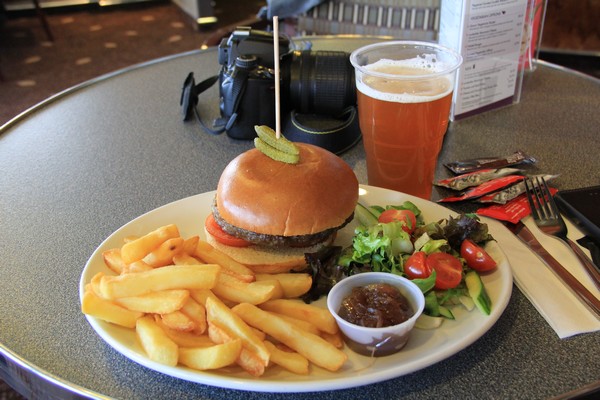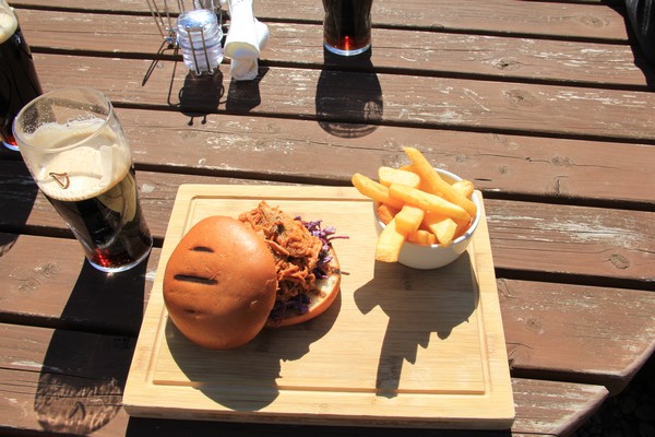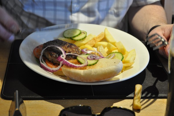 Med kurr i magen så vi beställer varsin Islay Ale och hamburgare, gud va gott det ska bli.