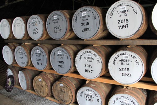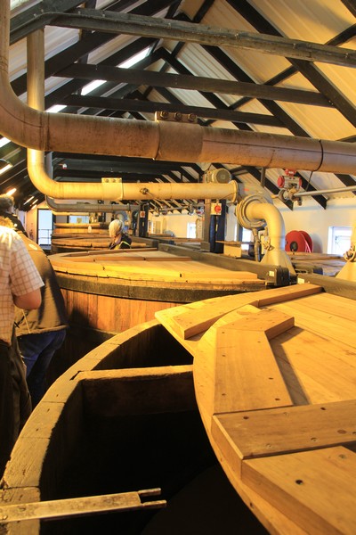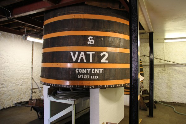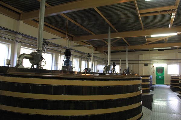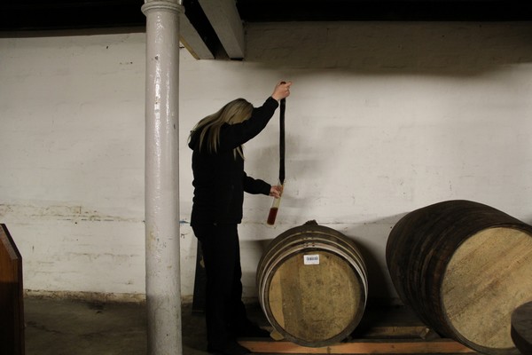 Och i dessa kar fyller man upp färdiglagrad whiskyn som ska buteljeras.