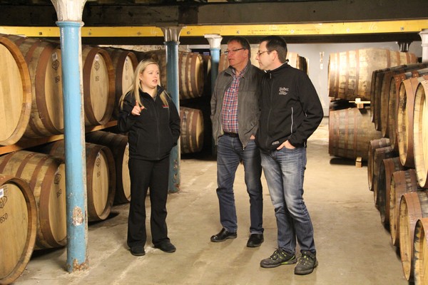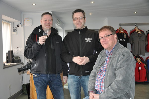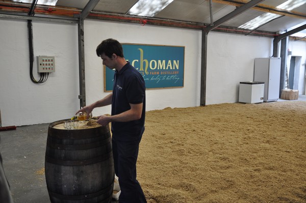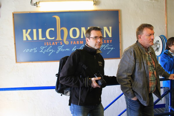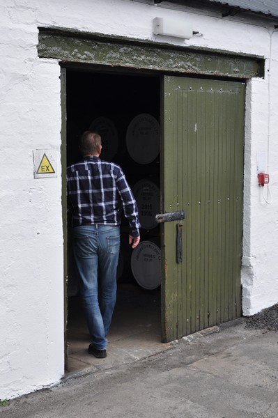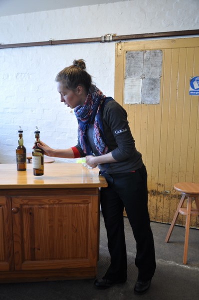 Kelly som visar oss in i Lagerhuset där vi ska få prova 3 olika sorters Whisky direkt från faten känner vi igen från Kilchoman när vi var där 2011 vilket stämmer då hon jobbade där under den tiden.