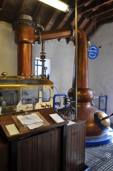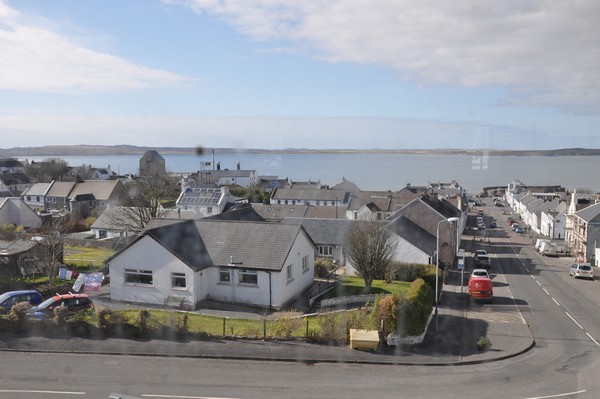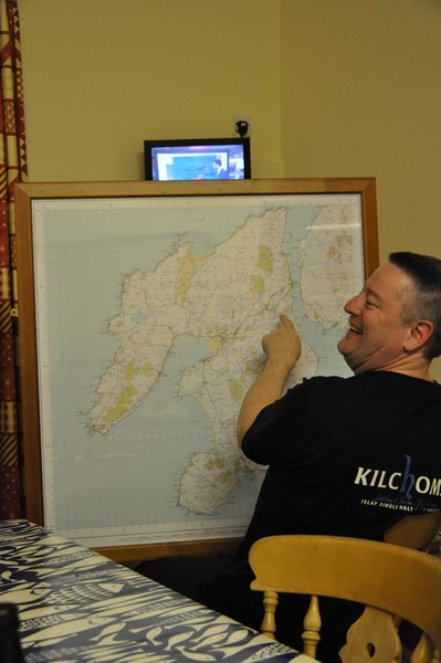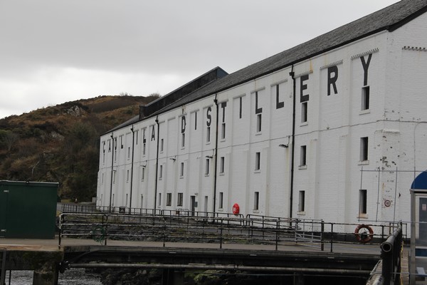 Byggnaden i mitten som syns från fönstret är Lochindaal Distillery som stängdes 1929 eller Port Charlotte som det hette från begynelsen och det fanns planer att skapa ett nytt destilleri där 2007 med namnet Port Charlotte Distillery men p.g.a. finanskrisen lades planerna på is och ligger fortfarande i malpåse.