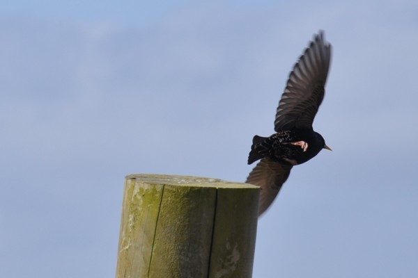 En fågel lyfter från sin utsiktsplats.