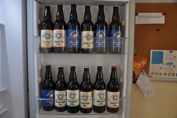...12 flaskor bestående av Saligo Ale, Angus Og Ale, Single Malt Ale, Kilchoman Dark, Kilchoman Pale och Nerabus Ale. Vi tar med vår låda och tackar för oss.