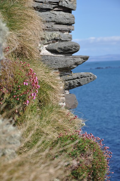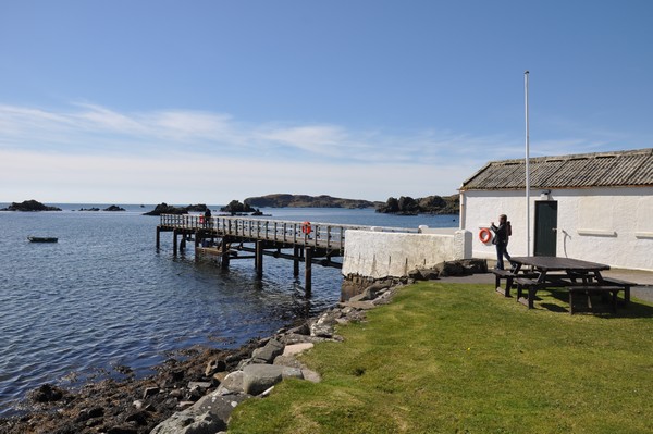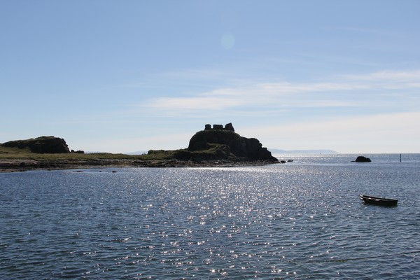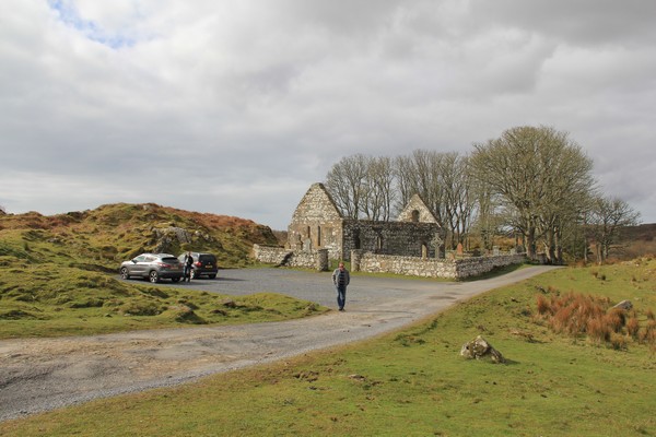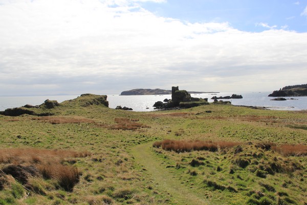 Vi tar en promenad ner till de kvarvarande ruinerna på ön Eilean na Comhairle.