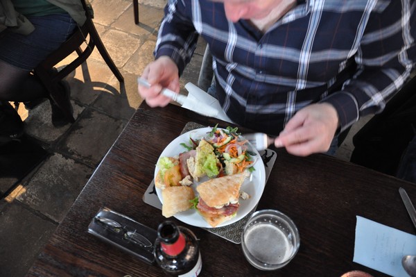 Frukosten sitter som en smäck och till allas förvåning så beställer Bengt en laxmacka...ibland överraskar Bengt t.o.m. sig själv, tyvärr var han så snabb att äta upp så vi han inte föreviga detta!