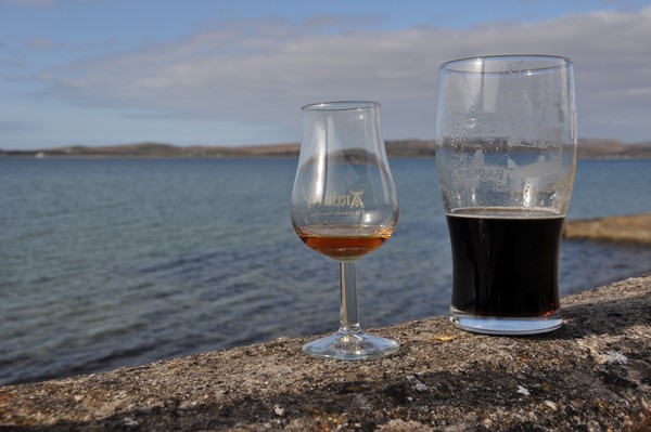 Det blir en Guinness West indies porter som är riktigt bra, efter en stund trillar det in ett gäng svenskar som under dagen provat sig fram från Ardbeg-Lagavulin-Laphroaig och nu landade på Harbour Inn. Vi surrar lite med grabbarna innan det börjar kännas som det är dax att ge sig av mot huset och en väntande säng, är trots allt ett tag sen vi gick upp vilket börjar kännas.
