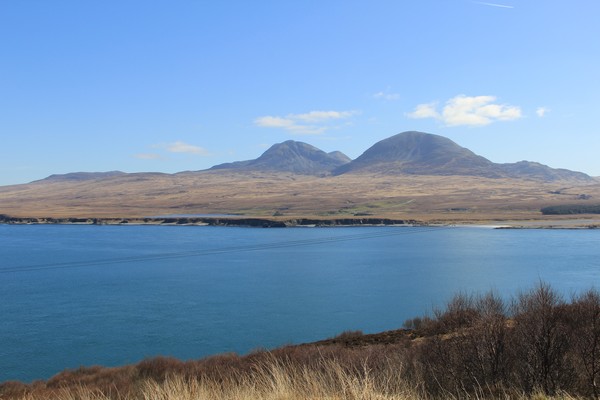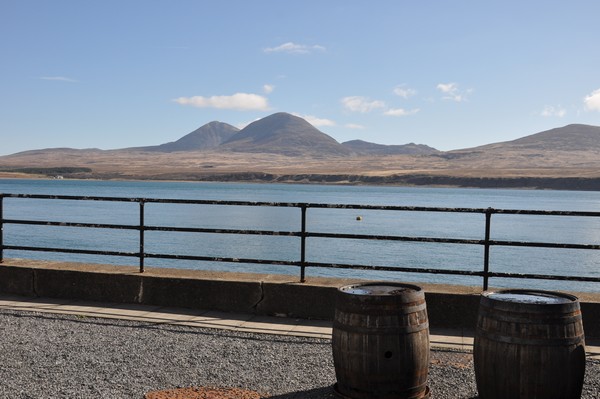 Vi ser topparna på Jura när vi åker sista biten mot Bunnahabhain där vi har bokat en Warehouse 9 Tasting.