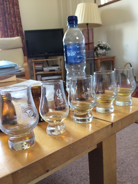Väl hemma i huset tänder vi en härlig brasa och snuttar på slattarna från dagens Bunnahabhainprovning och dom smakar ännu bättre i stugvärmen så det får nog bli en tur tillbaka till Bunnahabhain och se om vi kan köpa några flaskor.