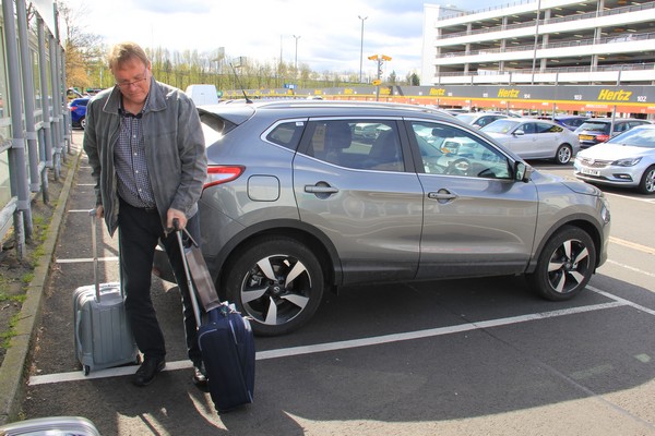 Vi hämtar ut bagaget och plockar upp vår hyrbil på Hertz som visar sig bli en Nissan Quashquai, rymlig o bra fram men bak är det lite trängre att komma in o ut så där hamnar Bengt, sen kastar vi oss ut i vänstertrafiken.